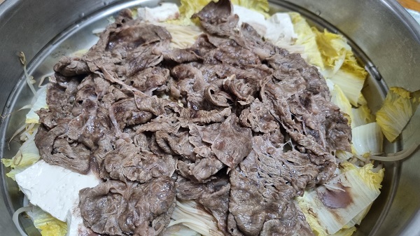 - 소고기(불고기용 또는 샤브샤브용 얇은 고기 추천)